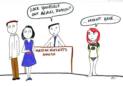 When taking out the kitty litter, always check to make sure you have your keys...or at least your pants.